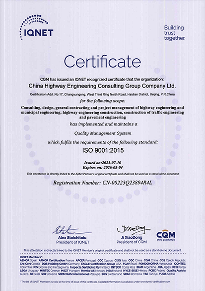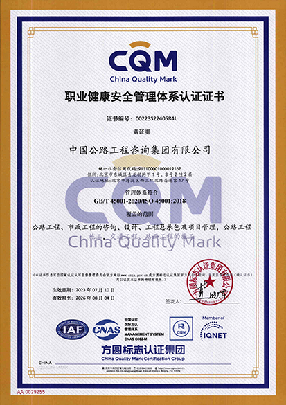 中咨集團通過了ISO質量、環境、職業健康安全管理體系認證